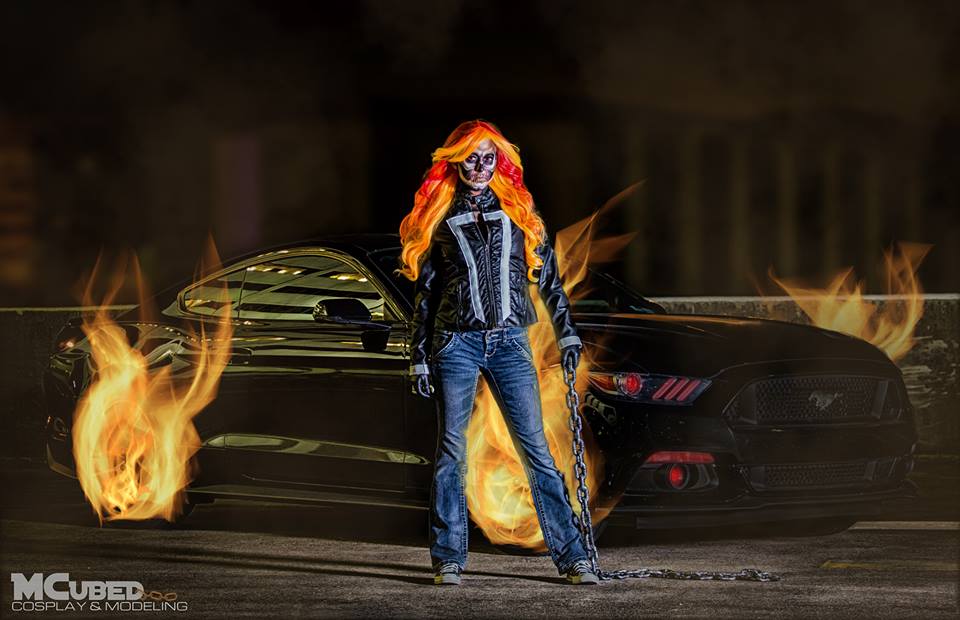 An 11x17 print of my Ghost Rider cosplay with his car!